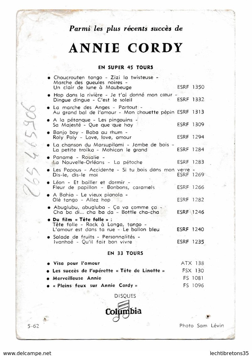 Carte postale - PHOTO AUTOGRAPHE DÉDICACE annie CORDY COLUMBIA