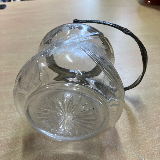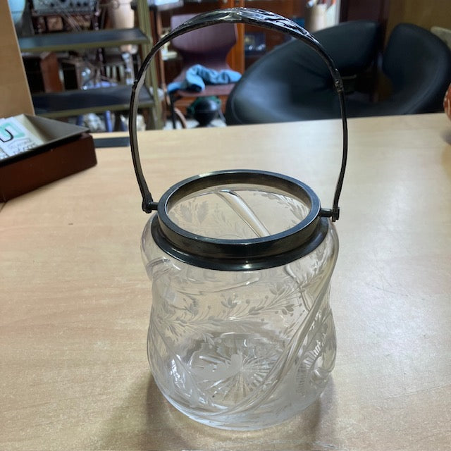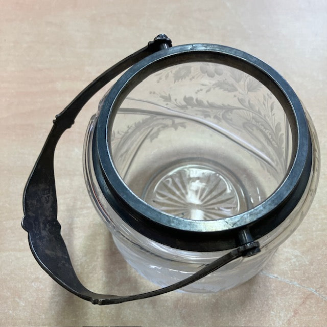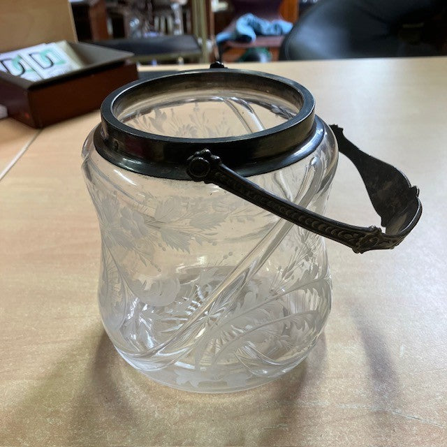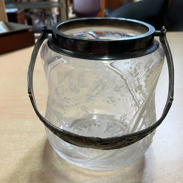 Sceau A Biscuits, Bonbonnière, En Verre Ou Cristal ? Gravé De Motif Floral, Anse En Argent Poincon
